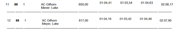 Für Luke läuft es besser. Zeiten ähnlich aber ohne Fehler. Platz 11 und 12 für Luke