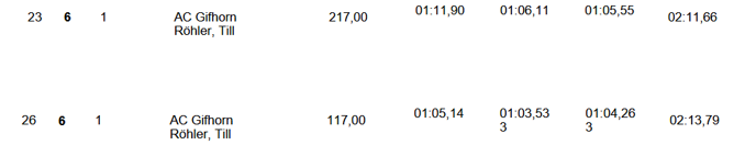 Robin und Reinhard für unseren Verein gefahren. Im Brandt-Duell behält Robin die Oberhand und holt eine knappe Sekunde auf seinen Vater raus. York folgt ihn dicht und Chantal reiht sich dahinter ein.